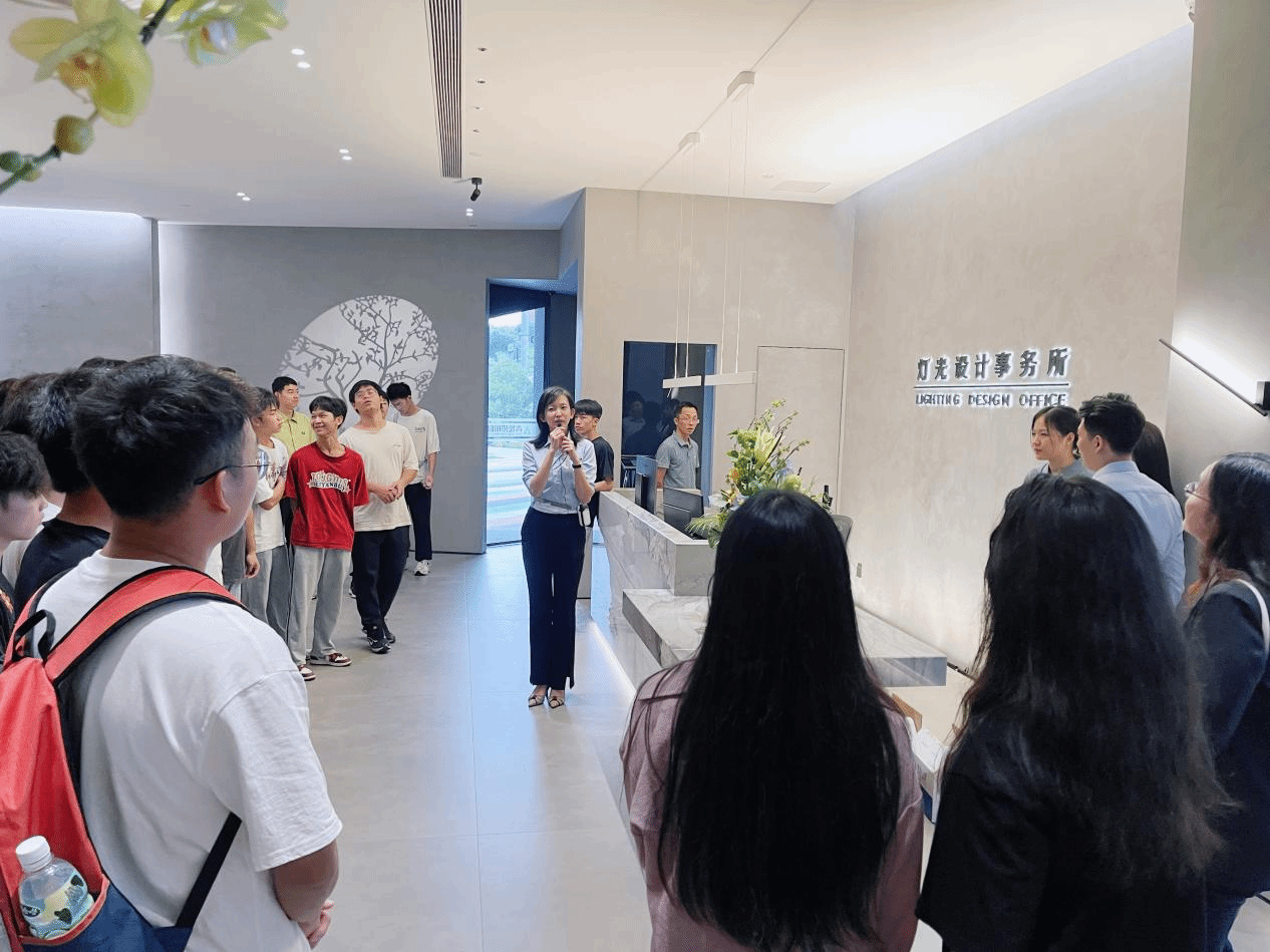 党支部副书记颜世华和副总经理都娜伊带领师生们参观了青松照明集团党建阵地、光知识科普区、灯光照明展厅、照明科技展厅等区域,在现场技术员的讲解引导下,师生们近距离感受不同领域的照明技术,更具体地了解了青松照明在技术研发方面的投入与成绩。