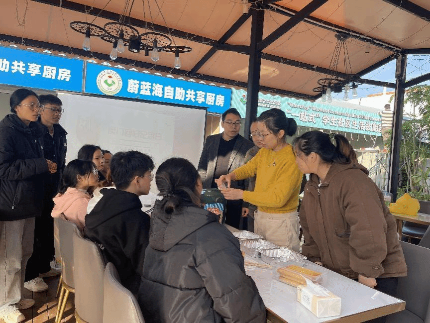 设备与环境学院在“一站式”学生社区生活技能超市——“共享厨房”开展爱国教育活动,同时带领同学们认识并亲身体验澳门特色美食的制作。