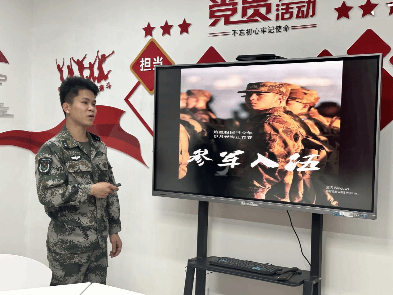 广西建院1月10日讯 (市政与交通学院 刘晗蕾)为积极营造大学生“关心国防、热爱国防、支持国防、建设国防”的良好氛围,鼓励和引导大学生积极应征入伍,市政与交通学院于1月9日在党建工作室开展“迷彩青春 志在军营”2024年春季征兵宣讲会,共有28名有参军意向的学生代表参会。