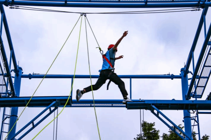 学生进行高空断桥团辅游戏