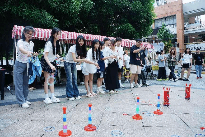 心理游园会将趣味性和益智性相结合,设置了趣味挑战区、艺术手绘区和微笑打卡区三个主题体验区,开展了“趣味洋片”“投壶”“桃桃棒”“公鸡下蛋”“旋转蜻蜓”“蒙眼敲锣”“套圈圈”“心理涂鸦”“心语墙”“微笑打卡”等11个活动。参与活动的同学需领取一张游园会闯关券,通过8个闯关游戏即可兑换一份精美礼品。