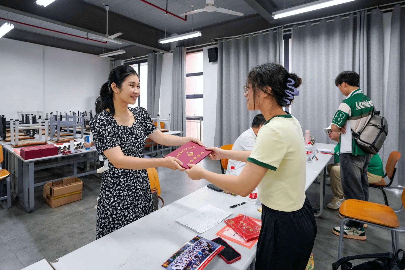 就业指导教师为毕业生颁发毕业证书