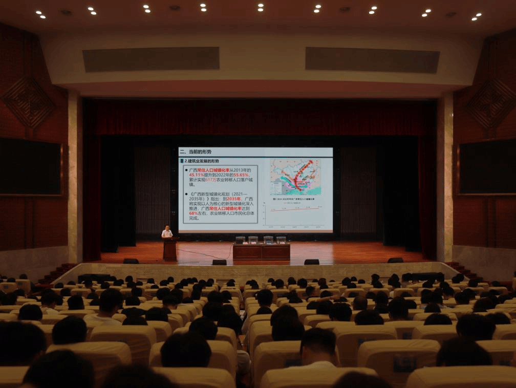 广西建院7月10日讯(土木工程学院讯 文/石明成 图/韦景朝 何可人)为进一步加强毕业岗位实习过程管理和安全教育,明确岗位实习要求,7月9日,土木工程学院在学校礼堂分批次召开2025届毕业生岗位实习动员及安全教育大会。土木工程学院院长李朝阳,党总支书记孔祥刚,副院长葛春雷、罗献燕等学院领导出席,实习老师代表、2025届毕业生辅导员及毕业生参加大会。大会由吴国堃老师主持。