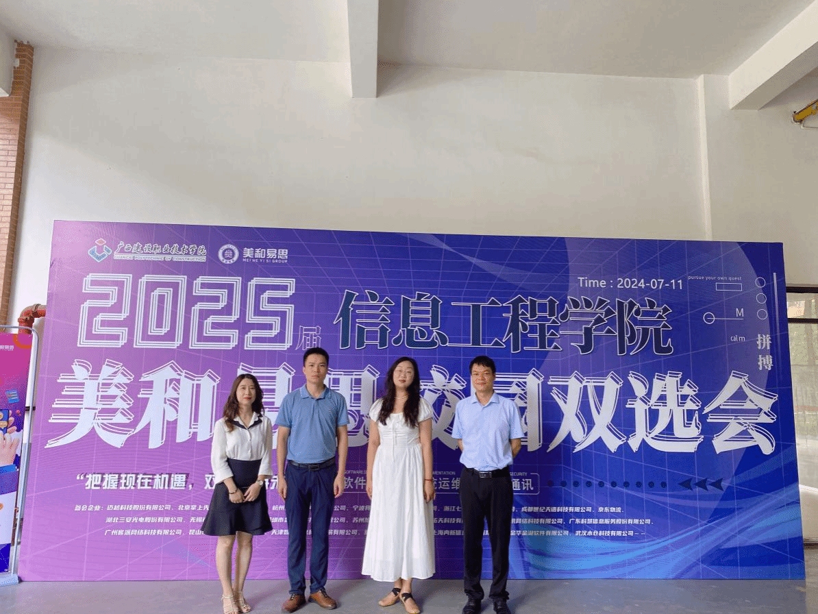 信息工程学院领导的高度重视本次双选会,覃一海副院长亲临现场指导工作,与美和易思项目经理梁婷婷、教学主任方文韬进行了深入交流,共同探讨如何更好地促进学生就业。