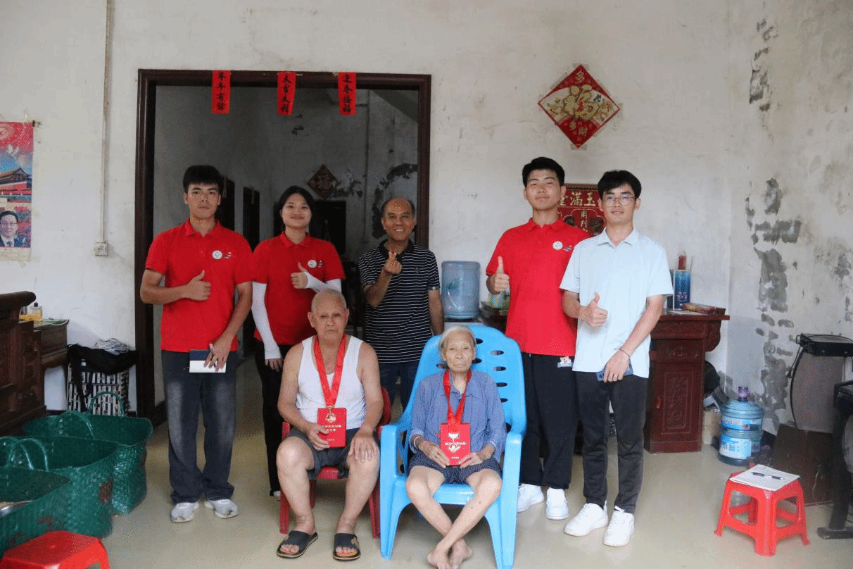 实践团成员与周元湖、周伯林夫妇合影