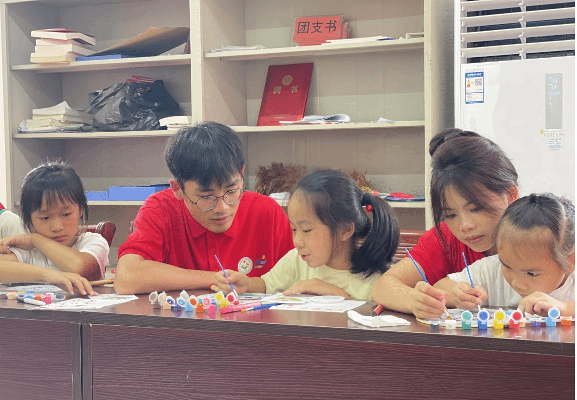 实践团成员指导小朋友手绘团扇