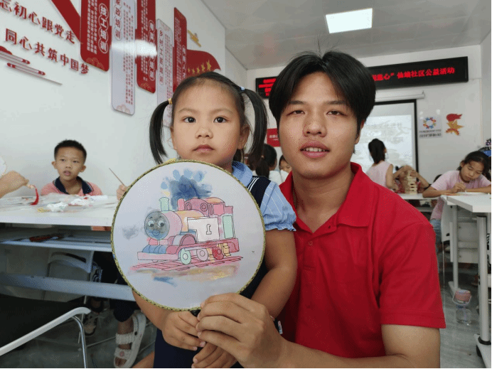 在炎炎夏日,一把精美的团扇,不仅能为人们带来清凉,更是传递情感、展现个性的艺术载体。在团扇制作和醒狮简笔画绘画课上,成员们引导社区青少年自由发挥创意。无论是山水田园的宁静致远,还是花鸟虫鱼的生机勃勃,抑或自己喜爱的卡通人物,都能通过手中的画笔,一一呈现于扇面之上。