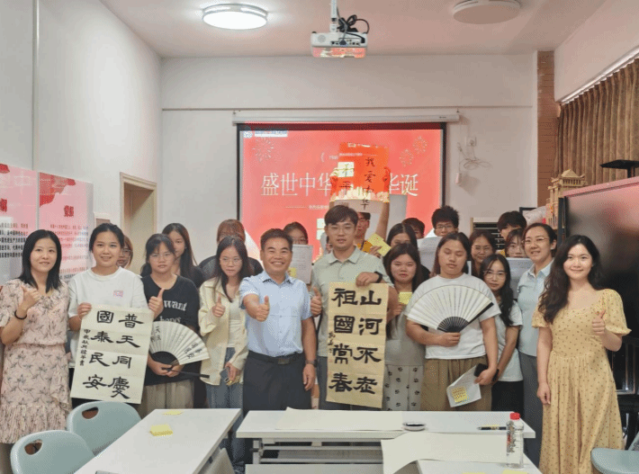 广西建院10月9日讯(文/梁晶晶 图/罗凤媚)为庆祝中华人民共和国成立75周年,弘扬爱国主义精神,厚植爱国情怀,9月29日下午,信息工程学院学生公寓党建工作室开展了“红色寄语,诗词筑梦”爱国主题系列活动。学校纪委书记唐东升,信息工程学院领导、教师代表以及青年学生代表参加了本次活动。