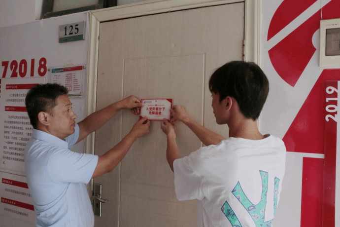 活动结束后,各党小组指导老师前往党员及入党积极分子所在寝室进行现场挂牌。