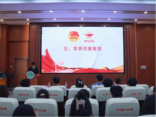 何佳亮同学作为学员代表发言。他代表学员庄严承诺,将珍惜本次培训机会,深入系统学习马克思主义世界观和方法论,读原著、学原文、悟原理,学会用马克思主义立场和观点解决问题,增强“四个意识”、坚定“四个自信”、做到“两个维护”,做好为党连接青年的桥梁纽带,立志成为马克思主义的坚定信仰者、积极传播者和忠实实践者,带动全体青年成长成才。