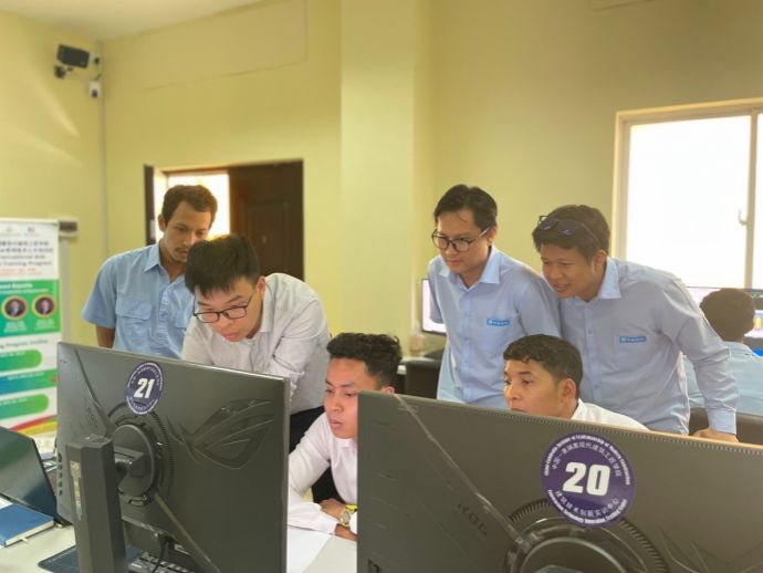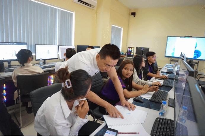 本次培训班为期三天,培训对象主要来自柬埔寨国家技术培训学院的师生以及中建四局、上海宝冶等中资企业的当地员工。广西建院派出的培训教师有来自拥有二十年企业工作经验的博士,有在全国高职教师教学能力大赛获奖教师,有参加国际开云线上平台_开云(中国)信息化竞赛获奖学生团队的指导教师。培训课程涉及BIM施工模拟应用、开云线上平台_开云(中国)设计领域前沿问题分析与解决案例、中国优秀国企BIM应用体系介绍以及国际BIM大奖赛优秀应用案例分享等。课程资源均由校企共同开发,培训教师均用英语授课,通过理论结合实操的形式,让学员们深入理解了BIM技术的优势和实践方法,教学现场互动热烈。