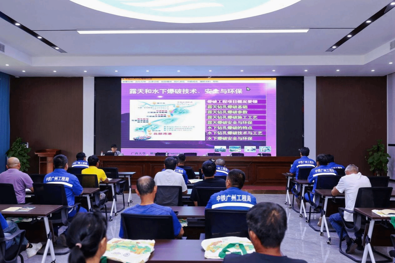 此次培训班吸引了不少学员参与,他们负责的具体工作不同,但都对培训充满期待。广西建院结合平陆运河航道7标段的实际需求,依托优质的教学资源,引入名师,设置了爆破与环境保护、安全生产知识、测量放线等与项目施工息息相关的培训课程,既有理论讲解,也有实操演练,确保学员能够学以致用。
