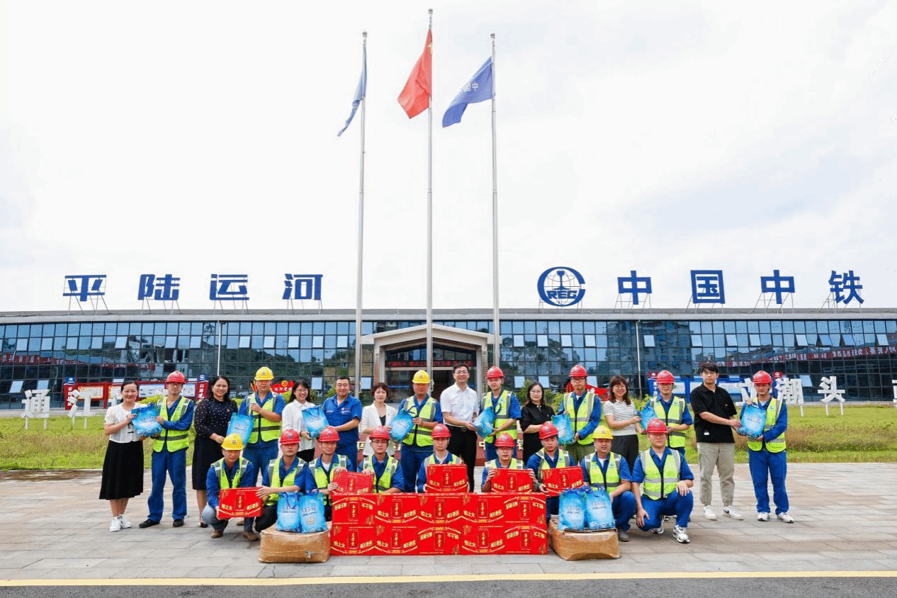 本次党日活动安排了慰问劳模和一线工人的环节,学校的党员干部代表们将“夏日清凉包”送到工人手中,表达了对他们的深切关怀和崇高敬意。