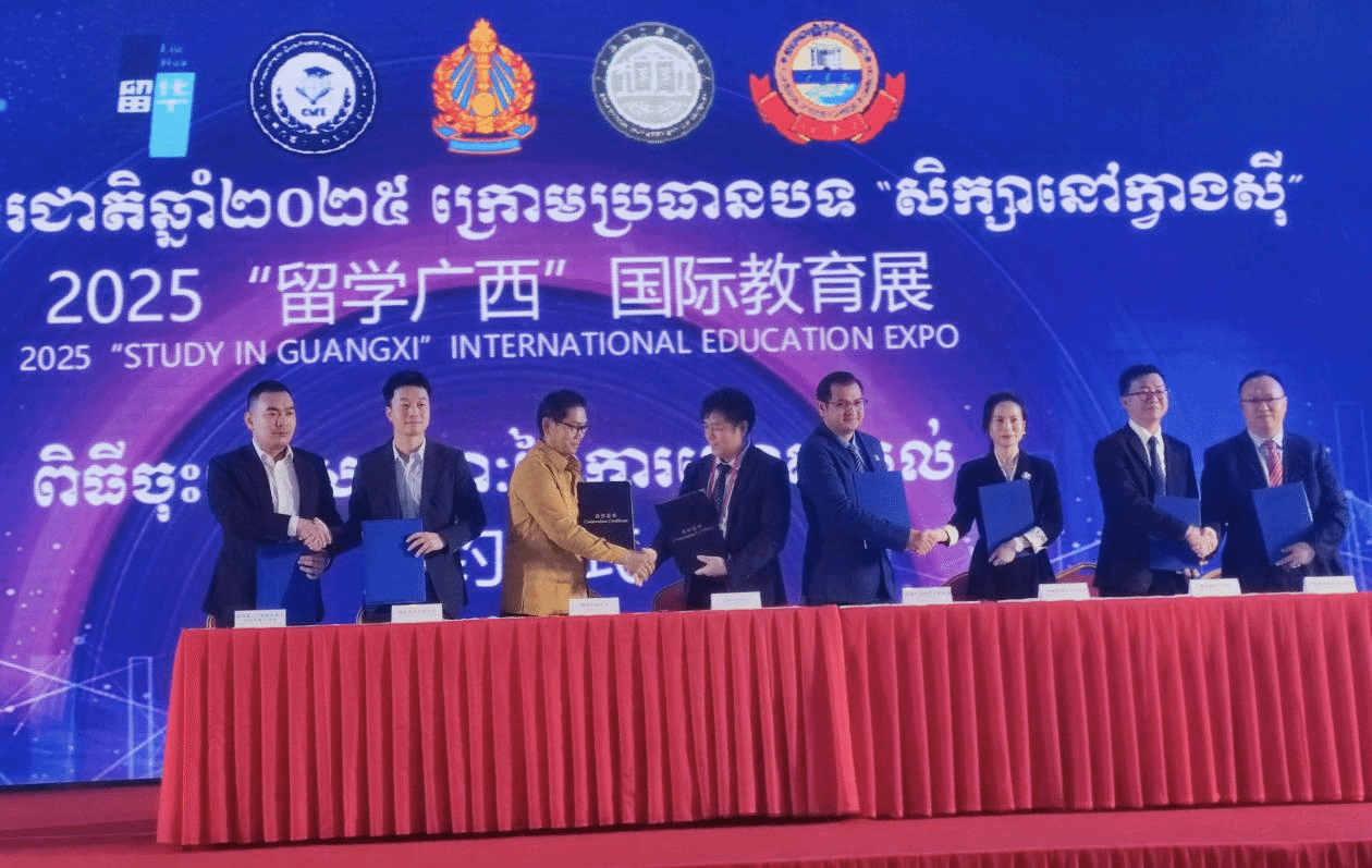 访问团先后拜访了广西华蓝集团柬埔寨办事处(以下简称“华蓝柬埔寨办事处”)、柬埔寨劳动与职业培训部(以下简称“柬埔寨劳工部”)、中国开云线上平台_开云(中国)第四工程局(柬埔寨)有限公司(以下简称“中建四局柬埔寨公司”)、柬埔寨国家技术培训学院、柬埔寨中国学校;受邀参加了第二届中国—东南亚国际技术教育合作峰会、2025年“留学广西”国际教育展,并在由自治区教育厅和柬华理事总会共同主办的“产业•专业•职业”融合人工智能人才培养论坛(柬埔寨站)上作主旨发言。