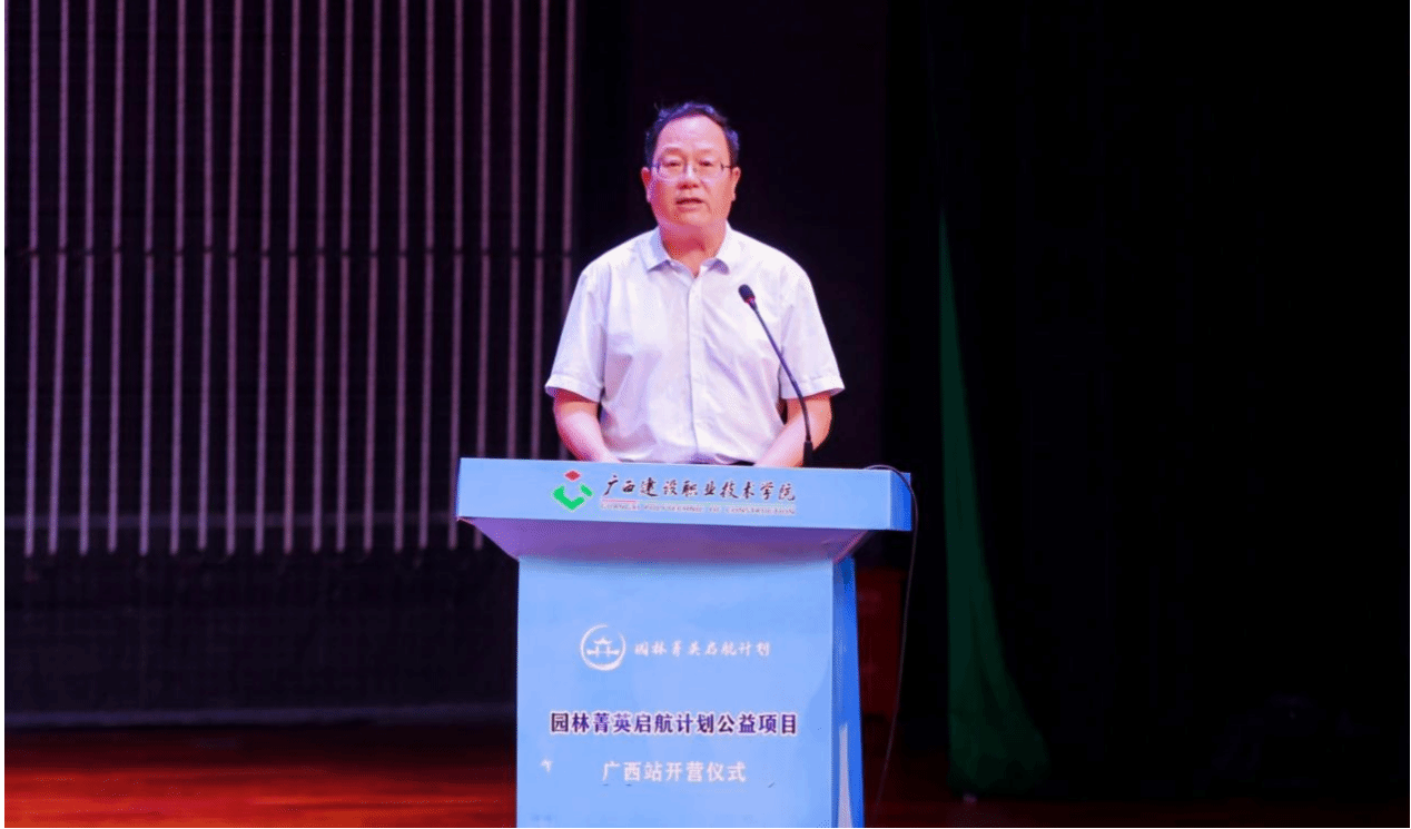 广西壮族自治区住房和城乡建设厅党组成员、副厅长于斌在开营仪式上表示,广西生态优势金不换,随着公园城市建设、城市生态修复和美丽乡村建设的深度推进,园林行业对高素质技术技能人才的需求比以往任何时候都更迫切。“园林菁英启航计划”公益项目精准对接行业发展需求,汇聚多方优势资源,创新人才培养模式,助力广西园林事业高质量发展。