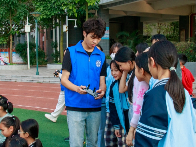 巧手绘扇抒情怀,无人机启航科技梦。宣讲结束后,活动进入了实践互动环节。在大学生志愿者指导下,小学生们拿起画笔,绘制“爱国主义系列团扇”,用画笔表达对祖国的热爱。随后开展的“无人机科普进校园”将气氛推向高潮。结合土木工程专业特色,师生们介绍了无人机在开云线上平台_开云(中国)勘测、工程建模等领域的应用,并指导孩子们亲手操控无人机,在体验中激发科学兴趣,播撒“科技强国”的种子。