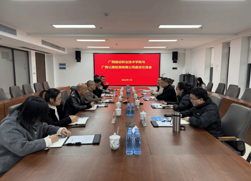 1月21日,市政与交通学院党总支书记刘海彬、院长靳丽莉带队赴广西公路检测有限公司走访调研,通过实地考察与座谈交流相结合的方式,深入推进校企合作,拓宽毕业生就业渠道。