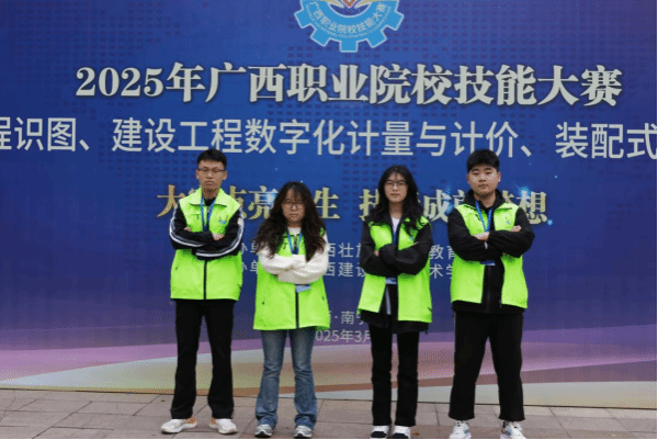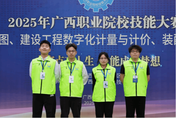 3月14-16日,在2025年广西职业院校技能大赛高职组资源环境与安全赛道——地理空间信息采集与处理组(赛项)中,来自全区 21 所高校的120余名师生参赛,竞争激烈。土木工程学院莫炜、蒋佳宏、潘宣佑和周成浩4位同学,在指导教师姚明星和赵磊的精心指导下,荣获银奖。该赛事在赛题和竞赛方式上进行了大胆创新,要求参赛队自主确定参赛项目,极大考验了学生的专业技能与综合素质。