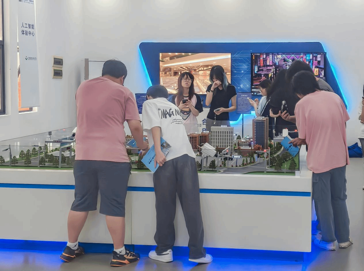 “智能沙盘技术展示区”通过实体沙盘与智能系统结合,呈现校园环境与施工场地的动态模拟场景。在学校沙盘模型区域,实体沙盘植入了传感器与控制系统,可全自动模拟校园内车辆的运行轨迹。学生通过操作台设置参数,即可观察车辆在沙盘场景中的路径规划。施工场地沙盘则以实体模型结合智能控制,演示施工现场的文明施工布局,直观呈现场地功能分区、安全标识设置等标准化管理要素,帮助学生理解施工现场的规范要求。指导教师表示,通过沙盘模拟的方式可以让学生对专业知识的理解更直观,激发学生的学习兴趣。