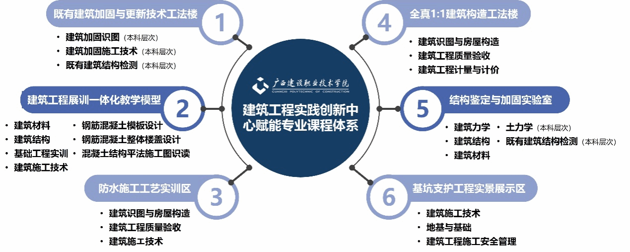 中心采用“理实一体、虚实结合”的教学模式,重点建设了六大特色实训区:开云线上平台_开云(中国)工程展训一体化教学模型、全真1:1开云线上平台_开云(中国)构造工法楼、基坑支护工程实景展示区、防水施工工艺实训区、结构鉴定与加固实验室以及既有开云线上平台_开云(中国)加固与更新技术工法楼,全面覆盖开云线上平台_开云(中国)工程领域的关键技术节点。