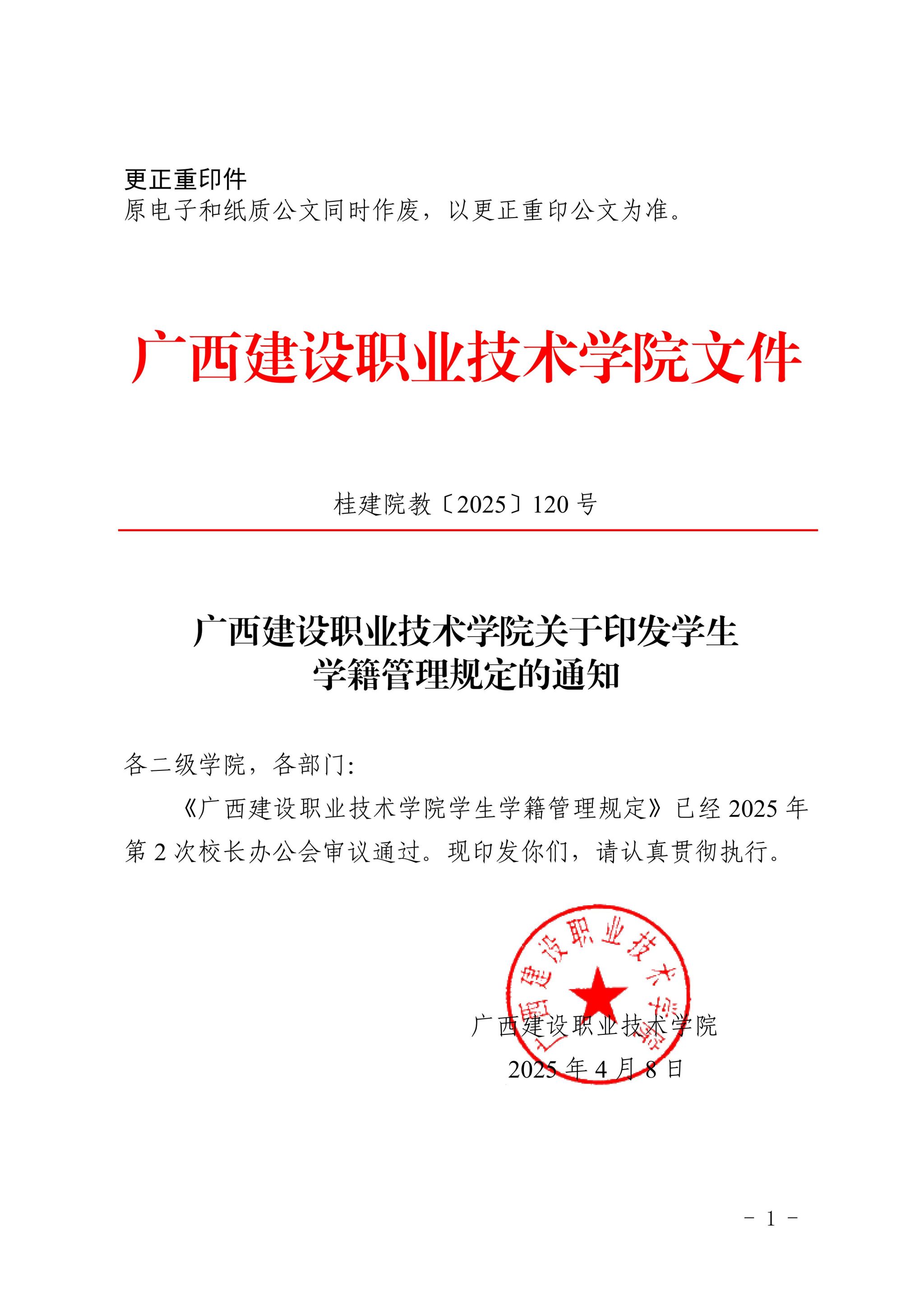 【更正重印件】桂建院教〔2025〕120号开云线上平台_开云(中国)关于印发学生学籍管理规定的通知.pdf
