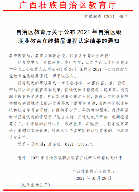 2021年自治区级职业教育在线精品课程