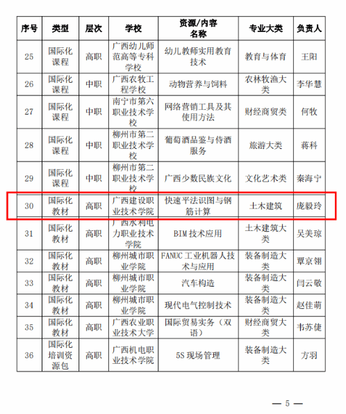 在2020年广西职业院校教学能力大赛高职组微课教学比赛中,参赛作品《柱纵筋插入基础中的构造与计算》荣获二等奖 | 在2019年广西职业院校教学能力大赛高职组微课教学赛项比赛中,参赛作品《悬挑梁纵筋的构造与计算》荣获二等奖 |