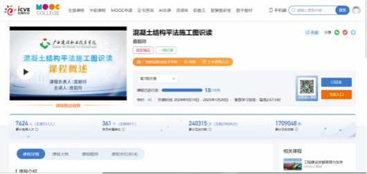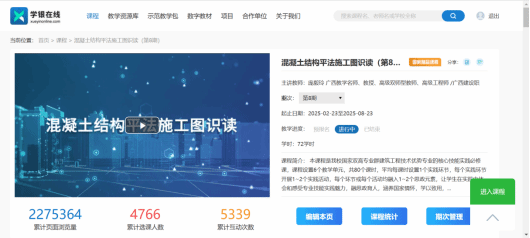 5.4教材配套课程《混凝土结构平法施工图识读》开课平台