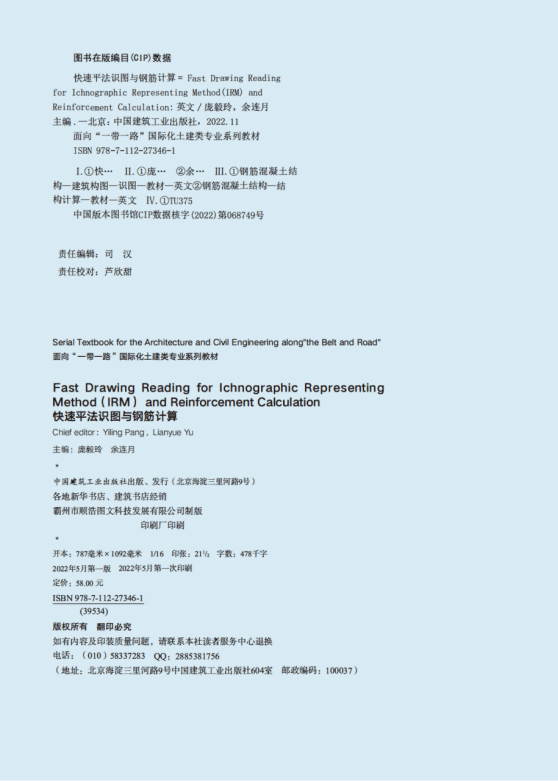 3.8教材英文版《Fast Drawing Reading for Ichnographic Representing Method (IRM) and Reinforcement Calculation》于2022年5月同步出版,教材入选
