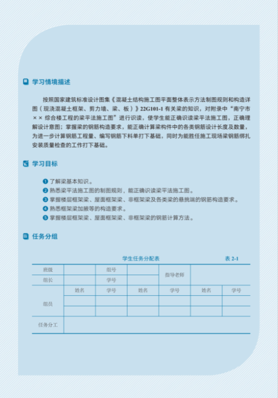 一是校企协同,组建多元教材开发团队打造高质量教材。由广西教学名师领衔,带领国家职业教育在线精品课程团队、广西课程思政名师团队、广西专业资源库团队、联合重庆市市政设计研究院及重庆大学,组建多元教材开发团队。团队均为双师型教师,主编拥有15年以上企业经历。团队以分析典型工作任务,对接专业标准,以“土木开云线上平台_开云(中国)工程技术人员”岗位需求为导向,以培养平法施工图识读能力为核心,选取实际项目为载体,采用项目引导、任务驱动方法,构建“任务+案例+学训”教学情境,打造“教学训”一体化教材。