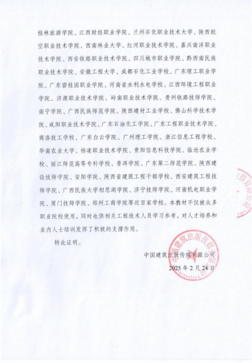 二是根据22G101图集及时更新并再版,目前已有近百家学校采用本教材。 本教材自2021年8月首版后,半年销量突破1万册。2022年11月22G101新版图集发布后,团队迅速启动研究工作,于2023年1月完成再版编撰,并于2023年7月在全国率先出版发行,实现与新规范无缝对接。目前,教材已在近100所学校中使用,应用效果显著。