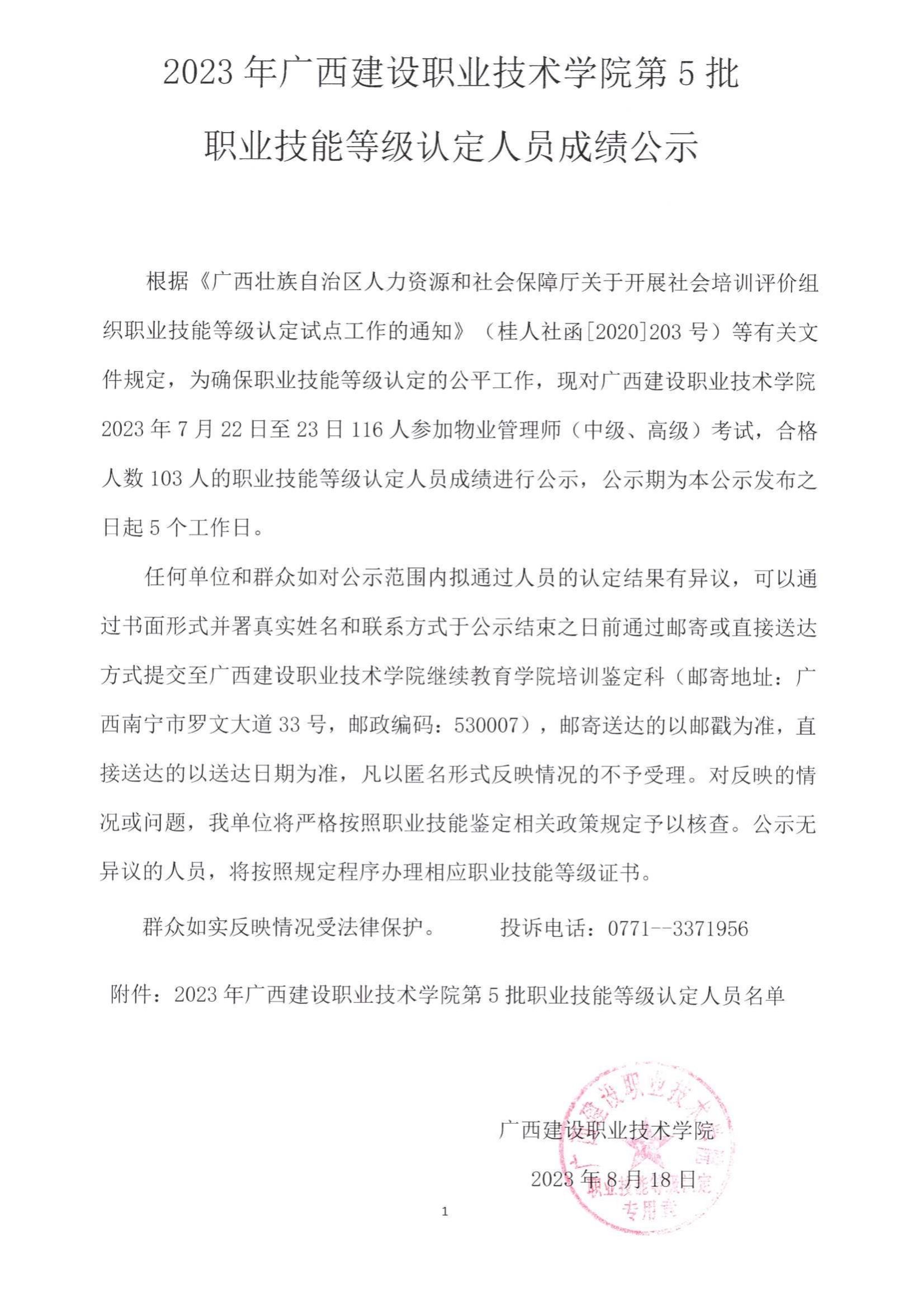 培训信息 当前位置: 首页 >> 培训信息 >> 正文 2023年开云线上平台_开云(中国)第5批职业技能等级认定人员成绩公示 发布日期:2023-08-21 点击: 附件【2023年开云线上平台_开云(中国)第5批职业技能等级认定人员成绩公示.pdf】已下载次