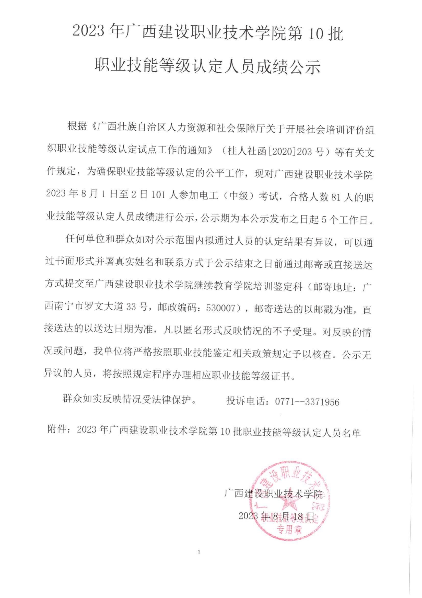 培训信息 当前位置: 首页 >> 培训信息 >> 正文 2023年开云线上平台_开云(中国)第10批职业技能等级认定人员成绩公示 发布日期:2023-08-21 点击: 附件【2023年开云线上平台_开云(中国)第10批职业技能等级认定人员成绩公示.pdf】已下载次