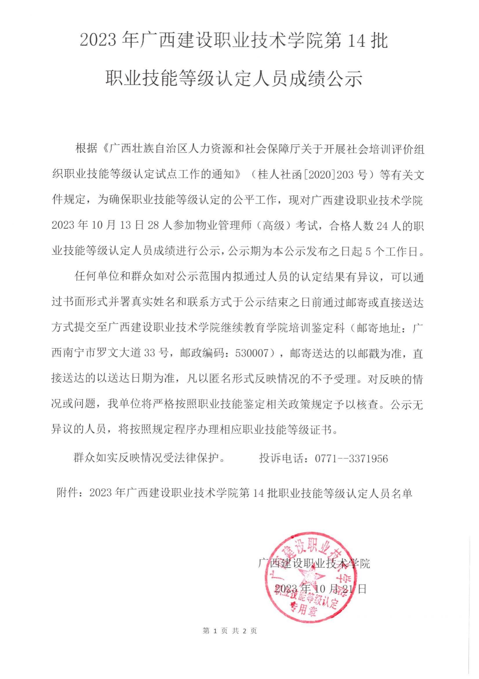 培训信息 当前位置: 首页 >> 培训信息 >> 正文 2023年开云线上平台_开云(中国)第14批职业技能等级认定人员成绩公示 发布日期:2023-10-27 点击: 附件【2023年开云线上平台_开云(中国)第14批职业技能等级认定人员成绩公示.pdf】已下载次