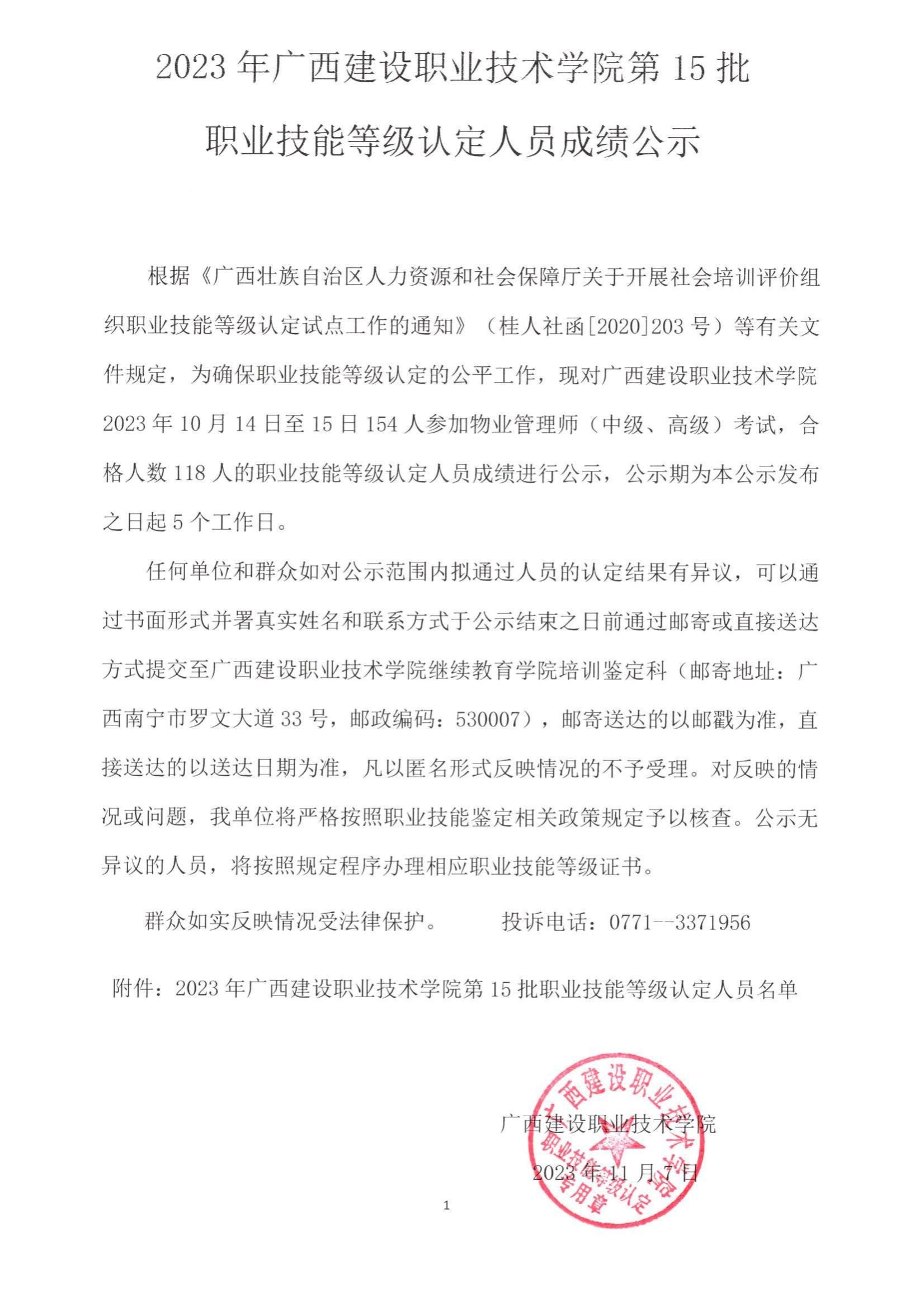 培训信息 当前位置: 首页 >> 培训信息 >> 正文 2023年开云线上平台_开云(中国)第15批职业技能等级认定人员成绩公示 发布日期:2023-11-08 点击: 附件【2023年开云线上平台_开云(中国)第15批职业技能等级认定人员成绩公示.pdf】已下载次