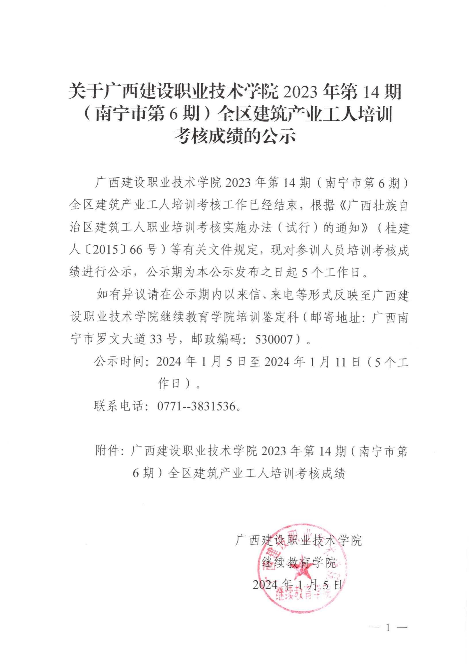 培训信息 当前位置: 首页 >> 培训信息 >> 正文 关于开云线上平台_开云(中国)2023年全区开云线上平台_开云(中国)产业工人第14期(南宁市第6期)培训考核成绩的公示 发布日期:2024-01-05 点击: 附件【关于开云线上平台_开云(中国)2023年全区开云线上平台_开云(中国)产业工人第14期(南宁市第6期)培训考核成绩的公示 .pdf】已下载次
