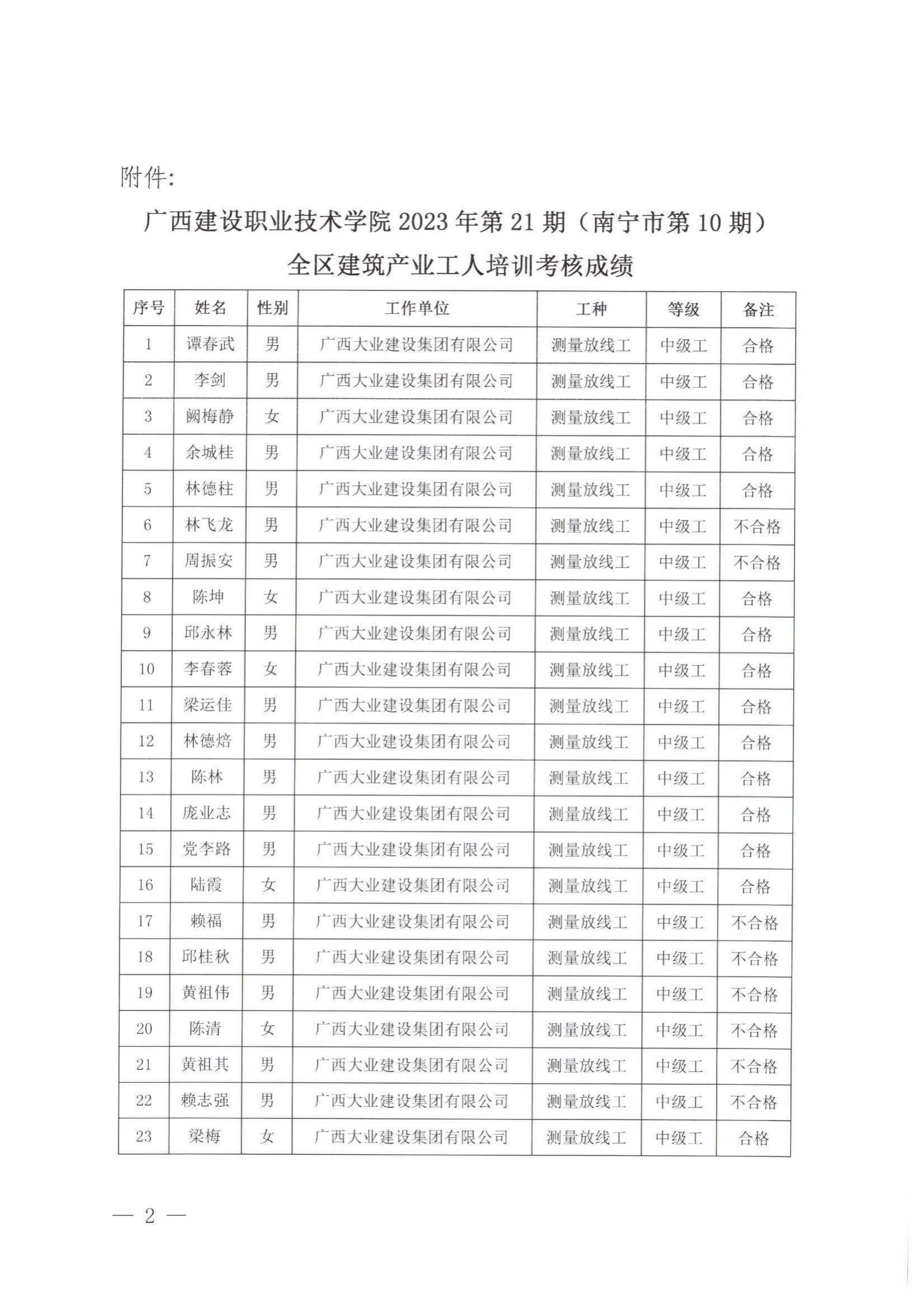 培训信息 当前位置: 首页 >> 培训信息 >> 正文 关于开云线上平台_开云(中国)2023年全区开云线上平台_开云(中国)产业工人第21期(南宁市第10期)培训考核成绩的公示 发布日期:2024-01-05 点击: 附件【关于开云线上平台_开云(中国)2023年全区开云线上平台_开云(中国)产业工人第21期(南宁市第10期)培训考核成绩的公示 .pdf】已下载次