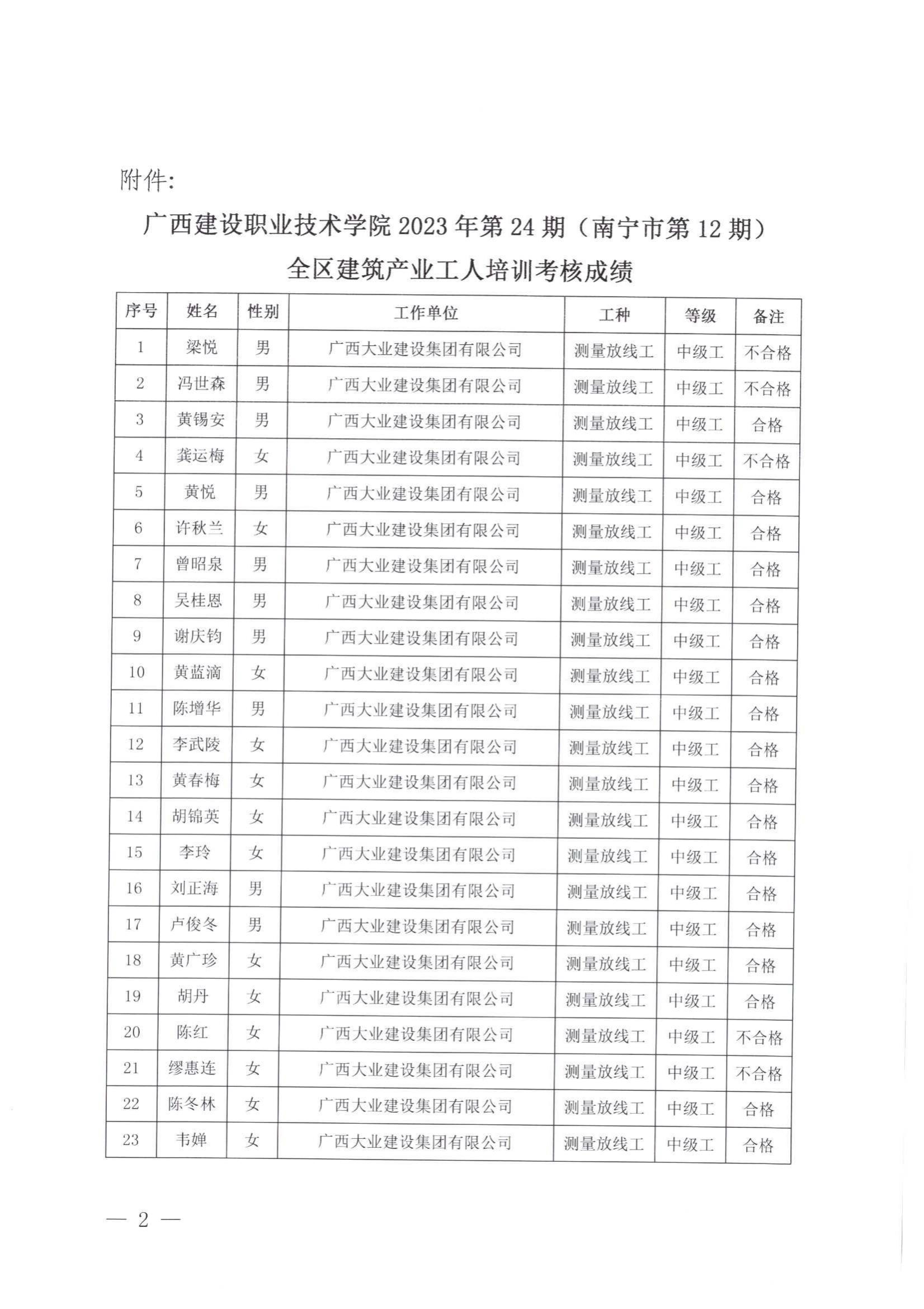 培训信息 当前位置: 首页 >> 培训信息 >> 正文 关于开云线上平台_开云(中国)2023年全区开云线上平台_开云(中国)产业工人第24期(南宁市第12期)培训考核成绩的公示 发布日期:2024-01-05 点击: 附件【关于开云线上平台_开云(中国)2023年全区开云线上平台_开云(中国)产业工人第24期(南宁市第12期)培训考核成绩的公示 .pdf】已下载次