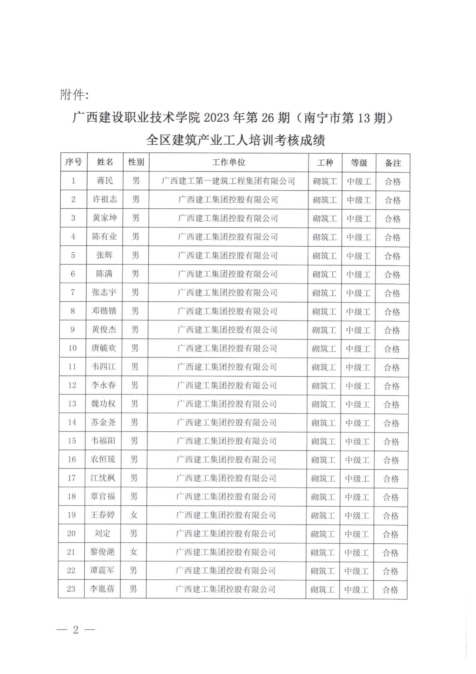 培训信息 当前位置: 首页 >> 培训信息 >> 正文 关于开云线上平台_开云(中国)2023年全区开云线上平台_开云(中国)产业工人第26期(南宁市第13期)培训考核成绩的公示 发布日期:2024-01-05 点击: 附件【关于开云线上平台_开云(中国)2023年全区开云线上平台_开云(中国)产业工人第26期(南宁市第13期)培训考核成绩的公示 .pdf】已下载次