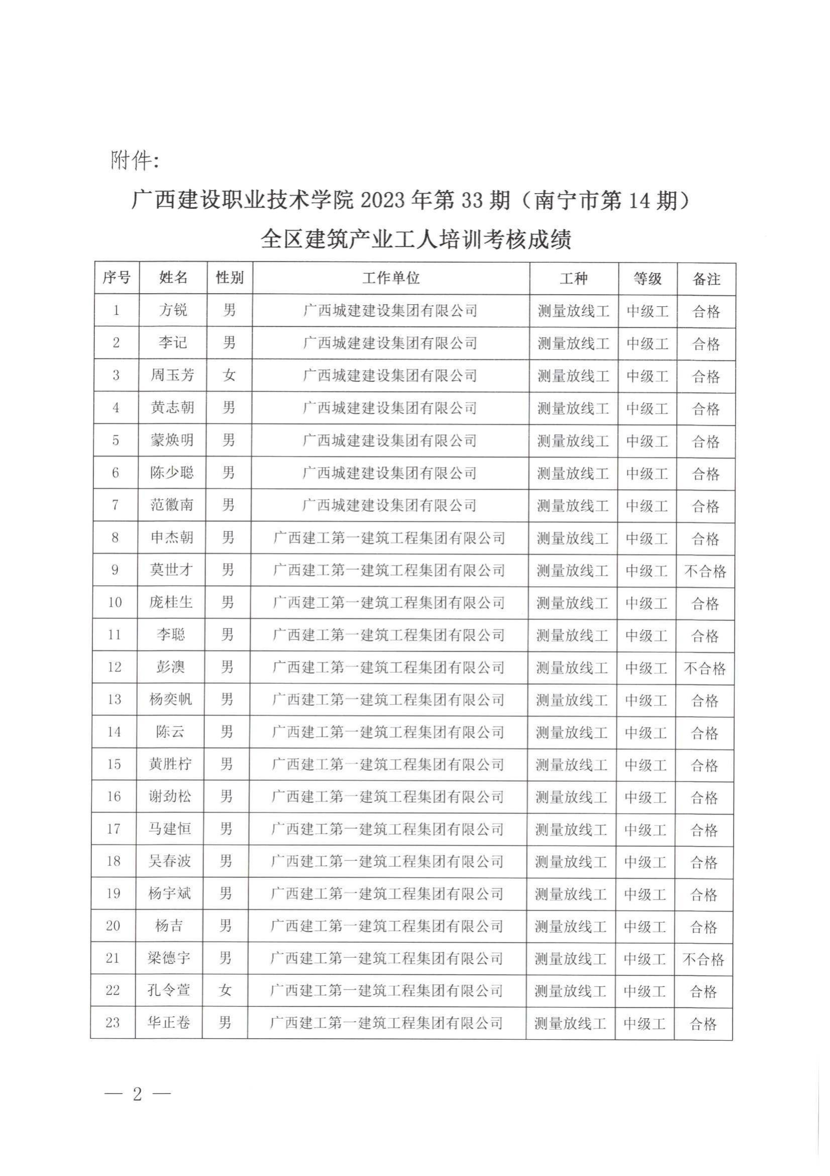 培训信息 当前位置: 首页 >> 培训信息 >> 正文 关于开云线上平台_开云(中国)2023年全区开云线上平台_开云(中国)产业工人第33期(南宁市第14期)培训考核成绩的公示 发布日期:2024-01-05 点击: 附件【关于开云线上平台_开云(中国)2023年全区开云线上平台_开云(中国)产业工人第33期(南宁市第14期)培训考核成绩的公示 .pdf】已下载次