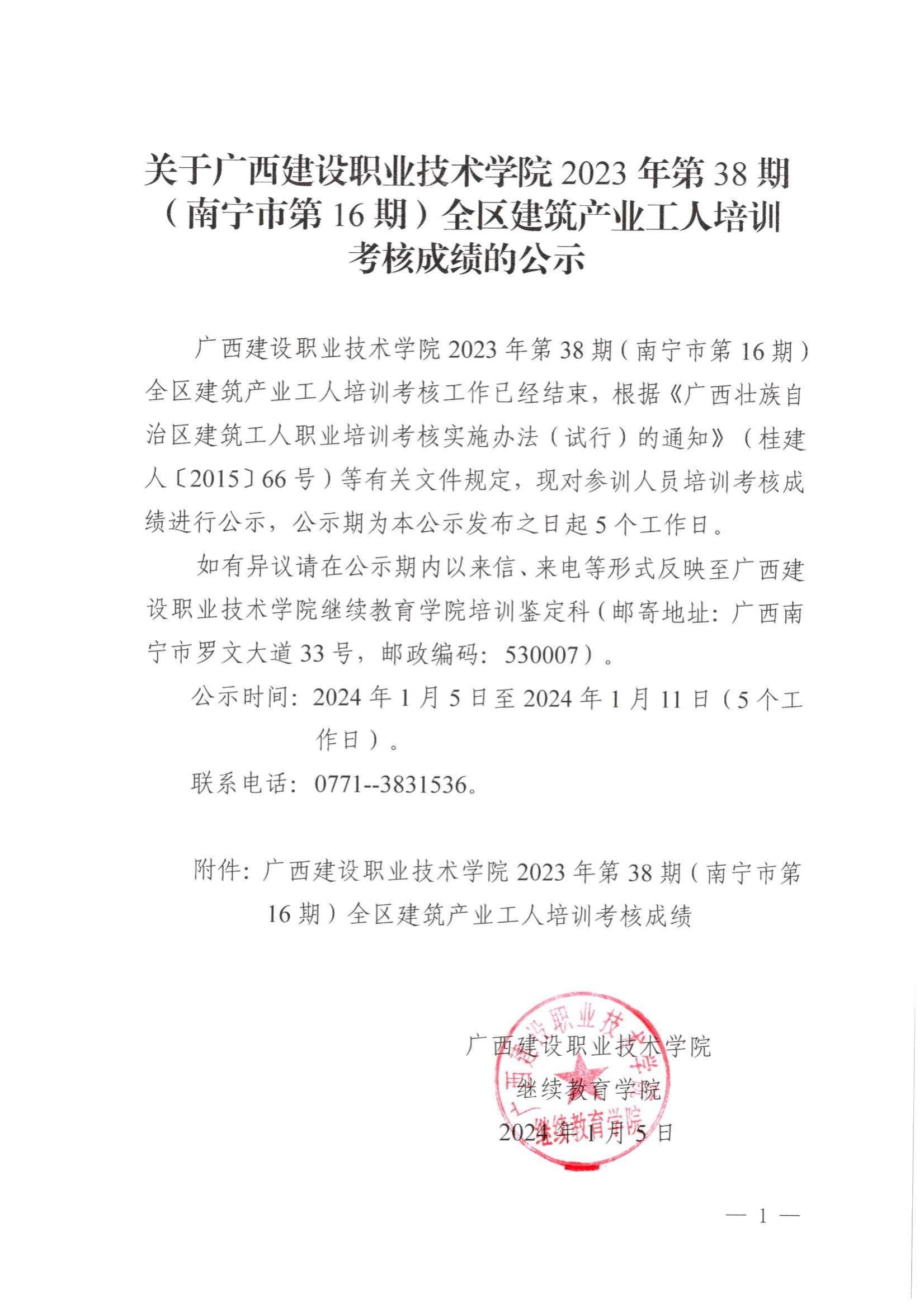 培训信息 当前位置: 首页 >> 培训信息 >> 正文 关于开云线上平台_开云(中国)2023年全区开云线上平台_开云(中国)产业工人第38期(南宁市第16期)培训考核成绩的公示 发布日期:2024-01-05 点击: 附件【关于开云线上平台_开云(中国)2023年全区开云线上平台_开云(中国)产业工人第38期(南宁市第16期)培训考核成绩的公示 .pdf】已下载次