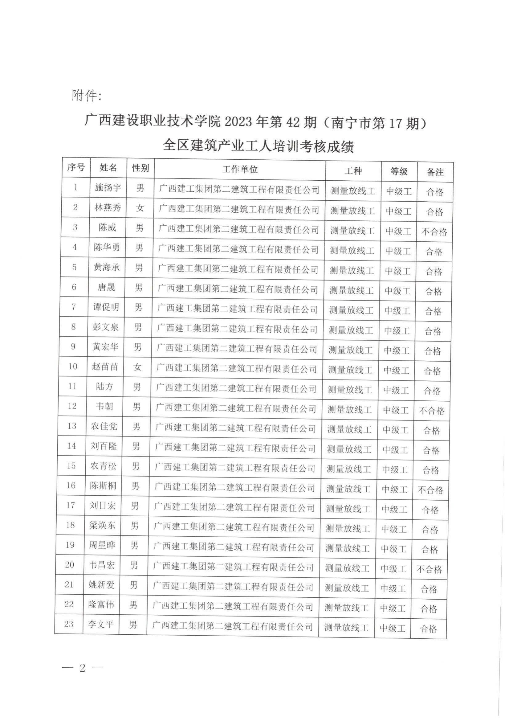 培训信息 当前位置: 首页 >> 培训信息 >> 正文 关于开云线上平台_开云(中国)2023年全区开云线上平台_开云(中国)产业工人第42期(南宁市第17期)培训考核成绩的公示 发布日期:2024-01-05 点击: 附件【关于开云线上平台_开云(中国)2023年全区开云线上平台_开云(中国)产业工人第42期(南宁市第17期)培训考核成绩的公示 .pdf】已下载次