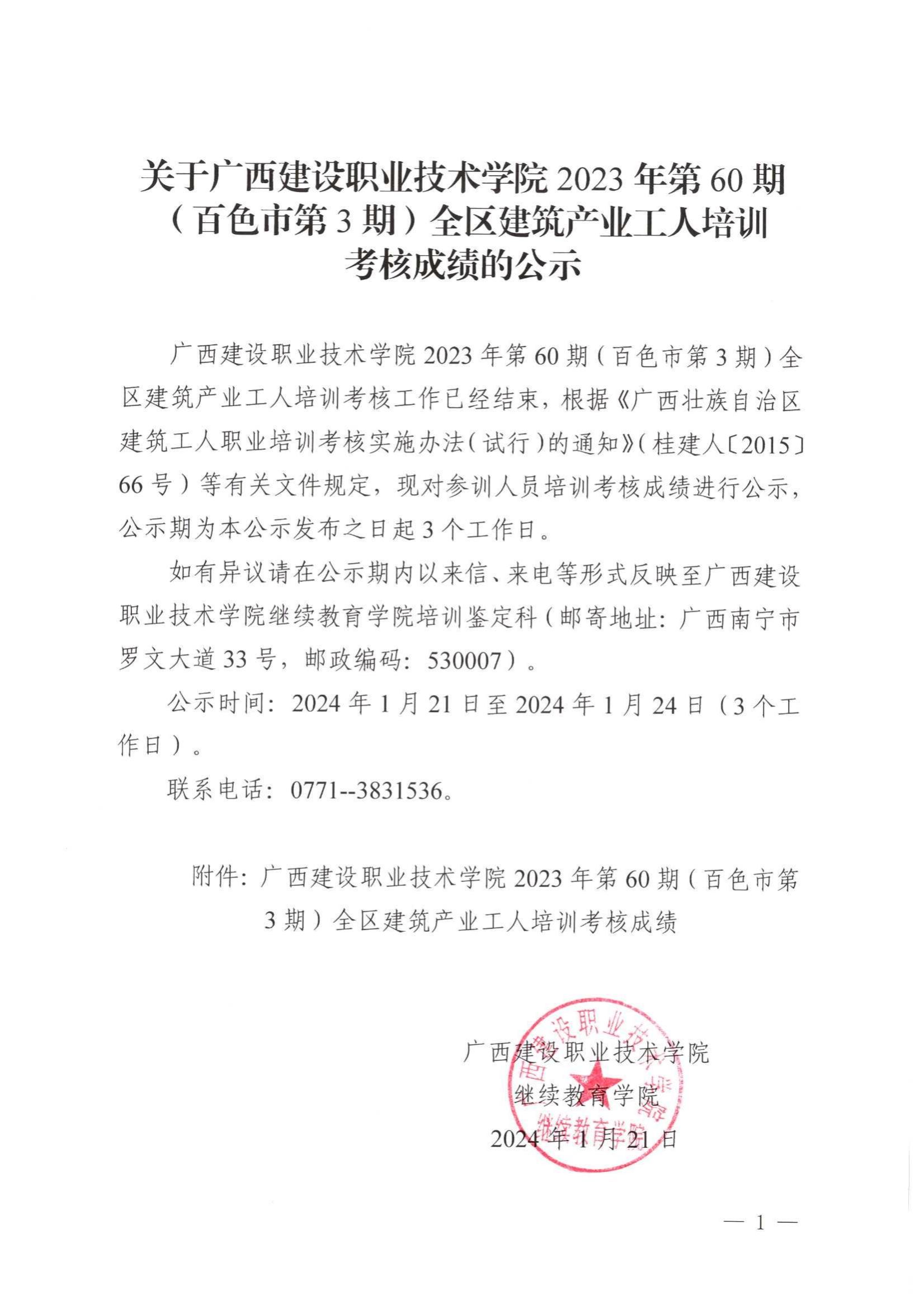 培训信息 当前位置: 首页 >> 培训信息 >> 正文 关于开云线上平台_开云(中国)2023年全区开云线上平台_开云(中国)产业工人第60期(百色市第3期)培训考核成绩的公示 发布日期:2024-01-20 点击: 附件【关于开云线上平台_开云(中国)2023年全区开云线上平台_开云(中国)产业工人第60期(百色市第3期)培训考核成绩的公示.pdf】已下载次