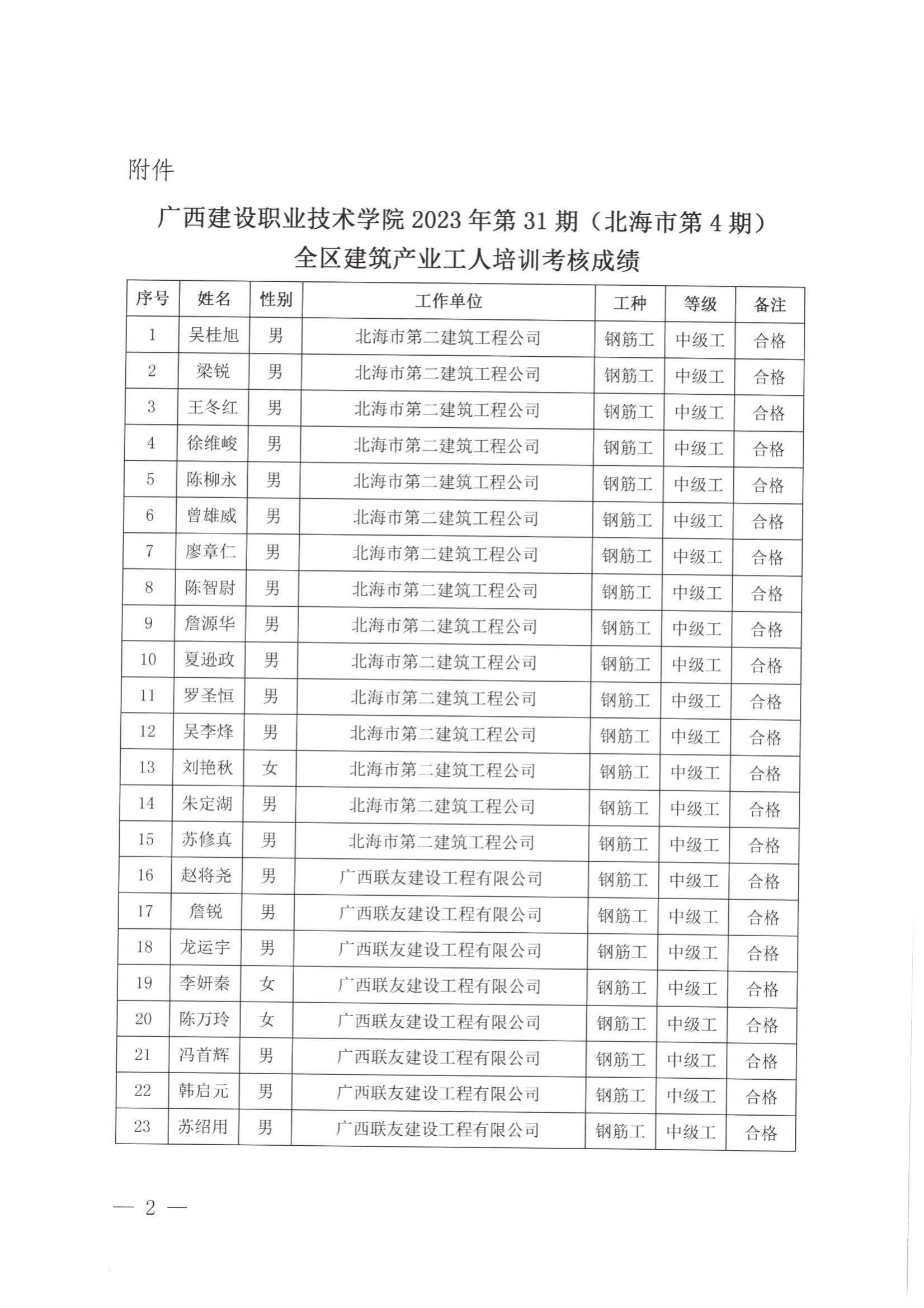 培训信息 当前位置: 首页 >> 培训信息 >> 正文 关于开云线上平台_开云(中国)2023年全区开云线上平台_开云(中国)产业工人第31期(北海市第4期)培训考核成绩的公示 发布日期:2024-01-23 点击: 附件【关于开云线上平台_开云(中国)2023年全区开云线上平台_开云(中国)产业工人第31期(北海市第4期)培训考核成绩的公示.pdf】已下载次