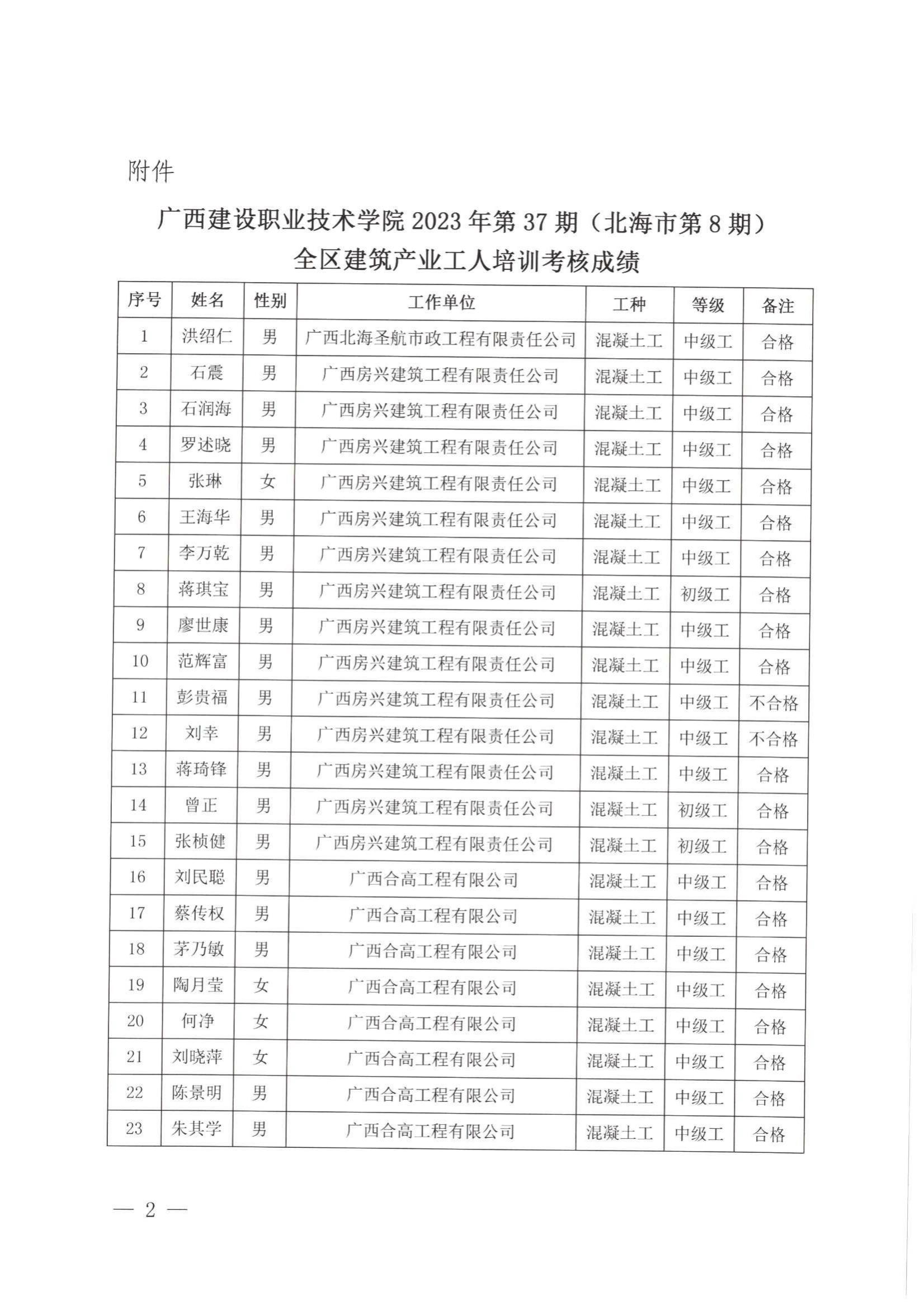 培训信息 当前位置: 首页 >> 培训信息 >> 正文 关于开云线上平台_开云(中国)2023年全区开云线上平台_开云(中国)产业工人第37期(北海市第8期)培训考核成绩的公示 发布日期:2024-01-23 点击: 附件【关于开云线上平台_开云(中国)2023年全区开云线上平台_开云(中国)产业工人第37期(北海市第8期)培训考核成绩的公示.pdf】已下载次