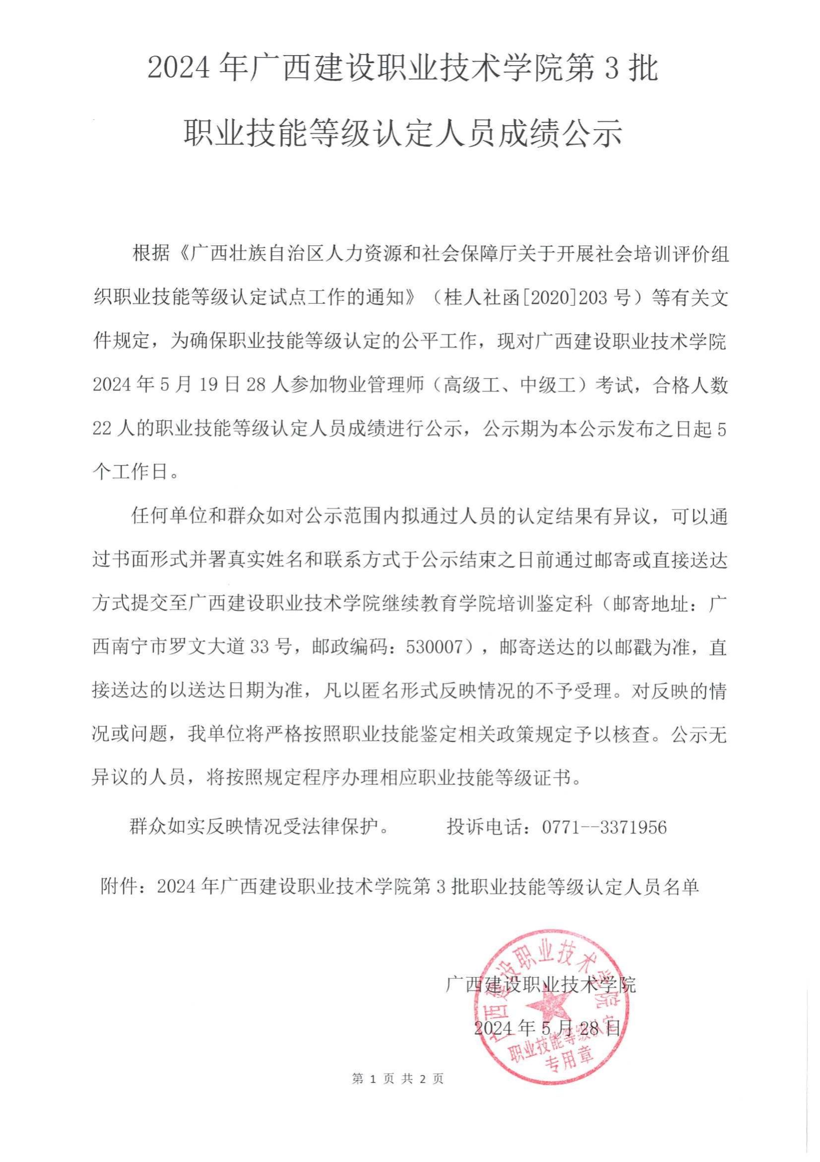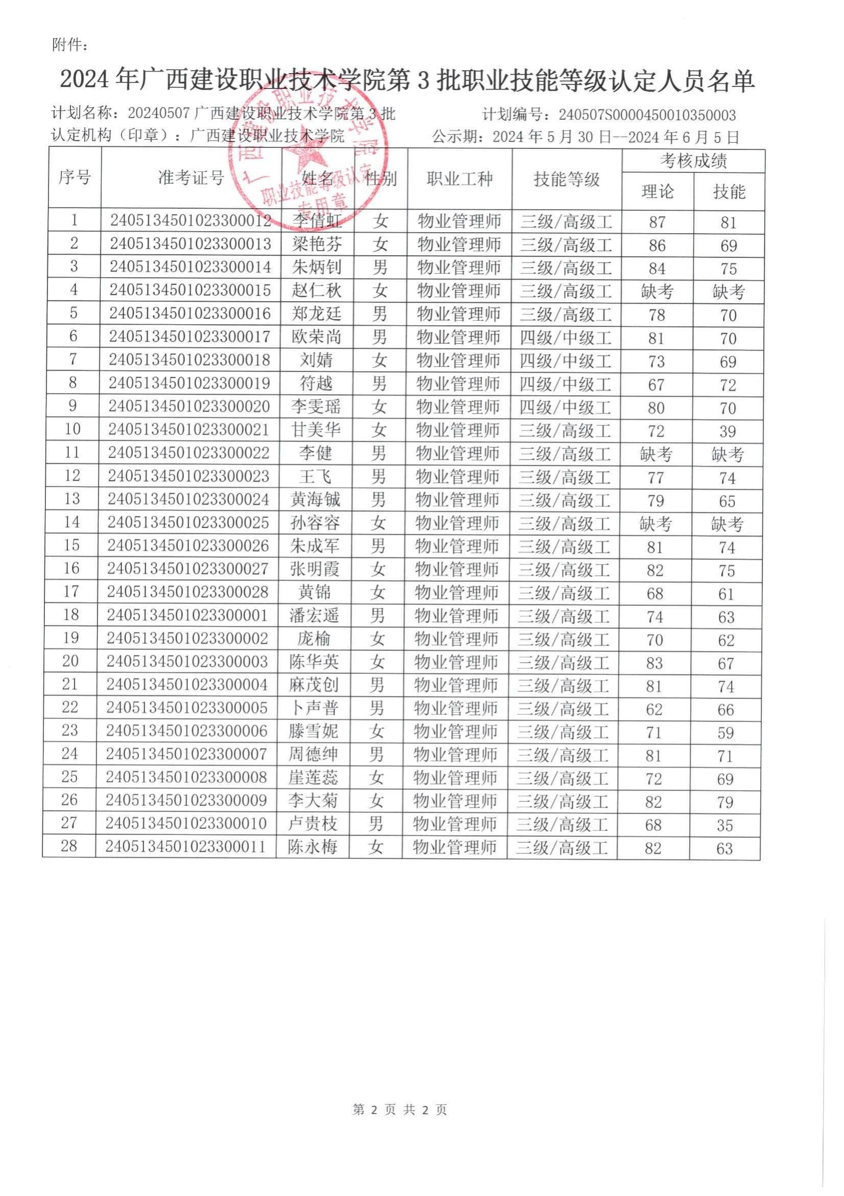 2024年开云线上平台_开云(中国)第3批职业技能等级认定人员成绩公示