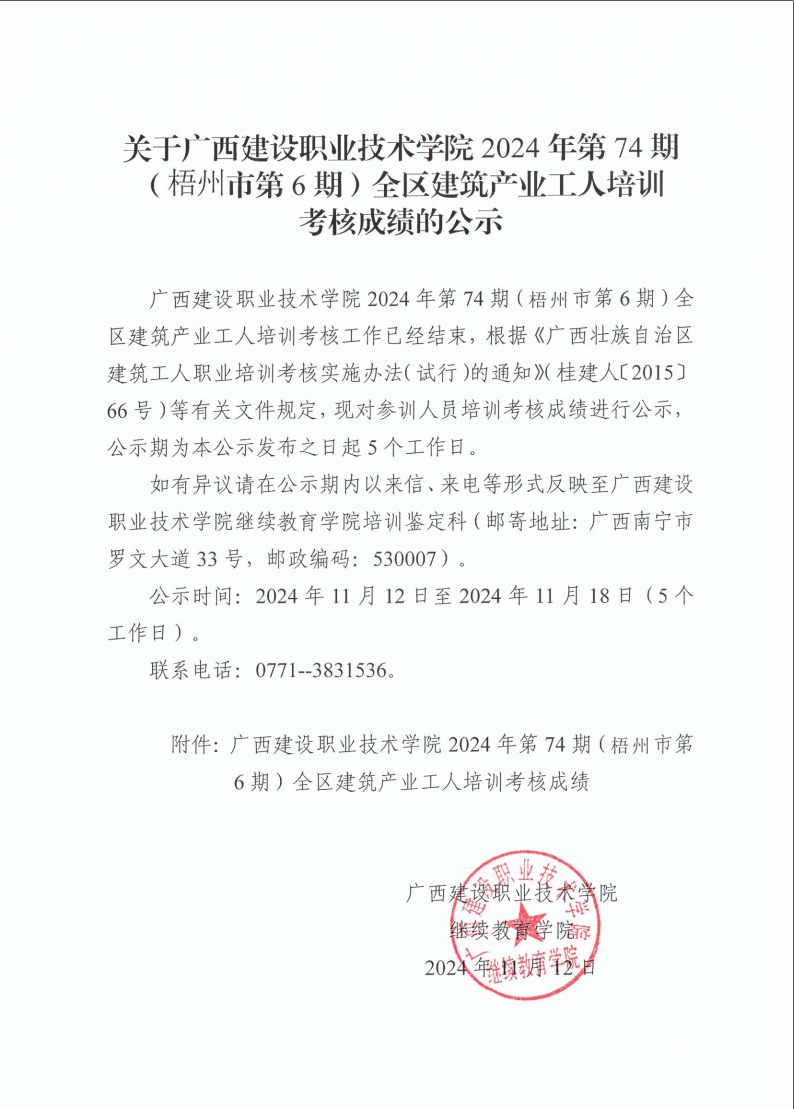 培训信息 当前位置: 首页 >> 培训信息 >> 正文 关于开云线上平台_开云(中国)2024年第74期(梧州市第6期)全区开云线上平台_开云(中国)产业工人培训考核成绩的公示 发布日期:2024-11-12 点击: 附件【关于开云线上平台_开云(中国)2024年第74期(梧州市第6期)全区开云线上平台_开云(中国)产业工人培训考核成绩的公示.pdf】已下载次