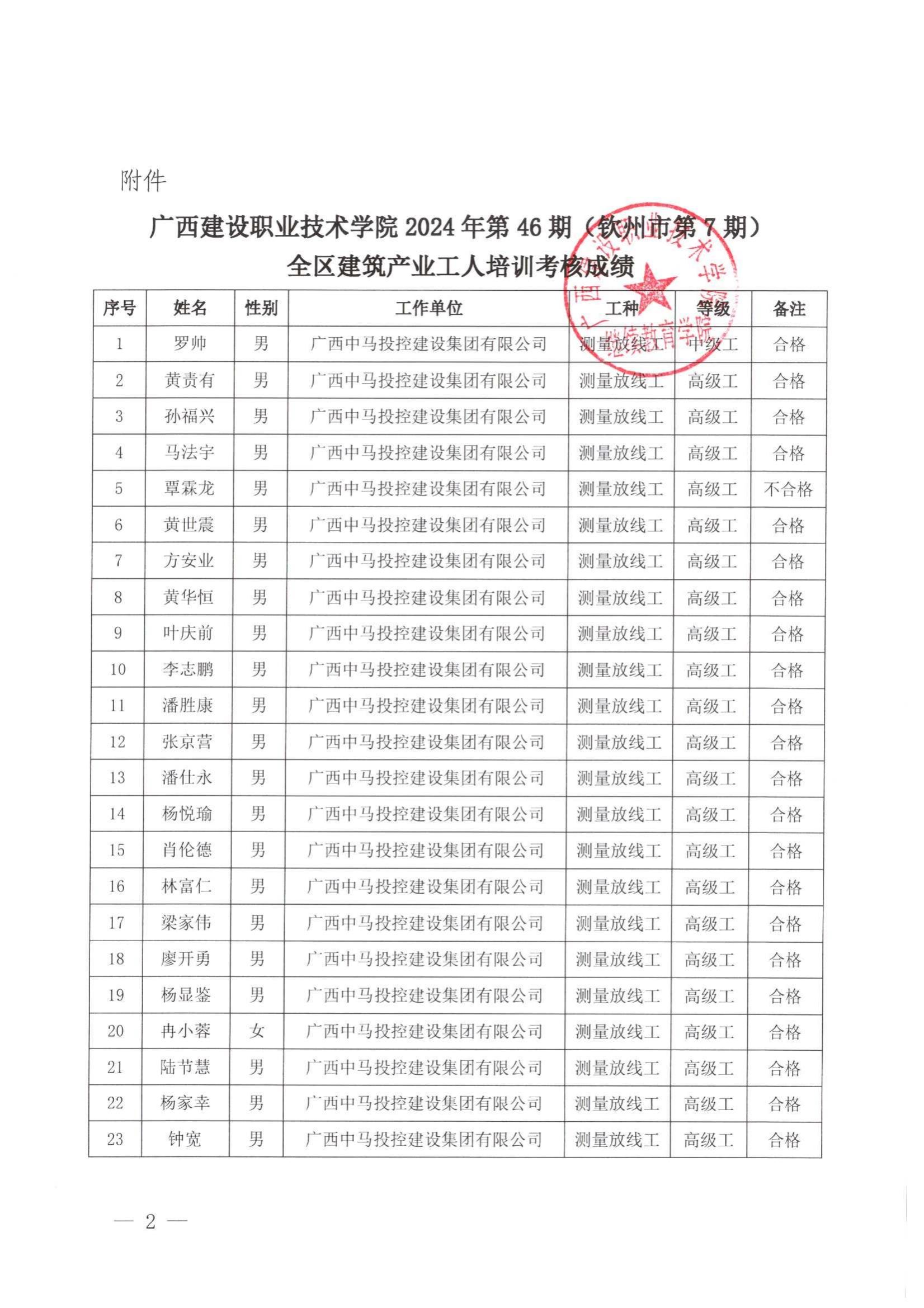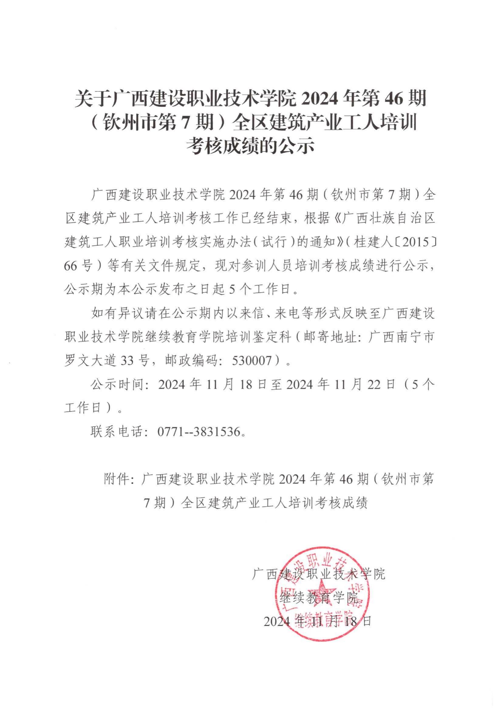 培训信息 当前位置: 首页 >> 培训信息 >> 正文 关于开云线上平台_开云(中国)2024年全区开云线上平台_开云(中国)产业工人第46期(钦州市第7期)培训考核成绩的公示 发布日期:2024-11-18 点击: 附件【关于开云线上平台_开云(中国)2024年全区开云线上平台_开云(中国)产业工人第46期(钦州市第7期)培训考核成绩的公示.pdf】已下载次