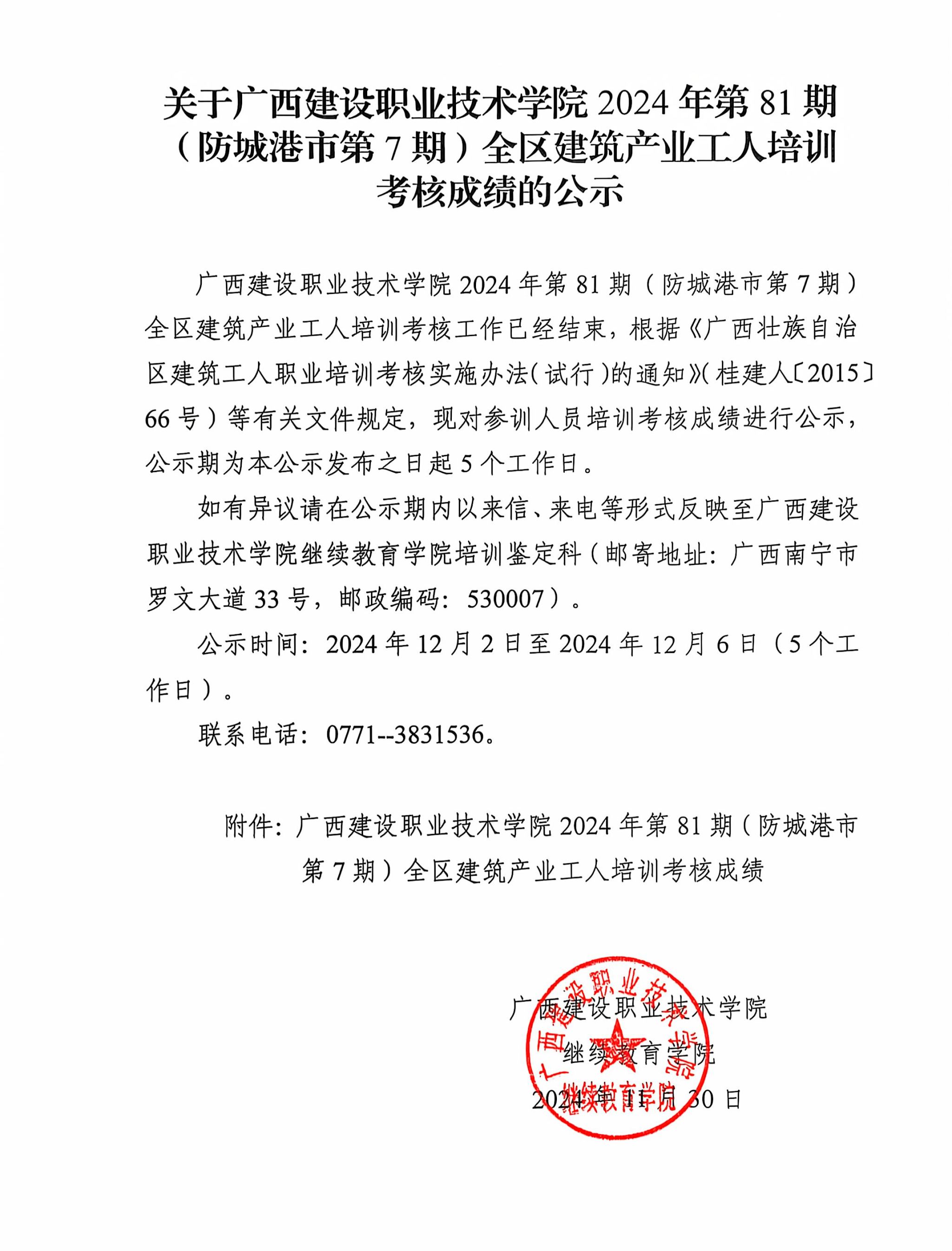 培训信息 当前位置: 首页 >> 培训信息 >> 正文 关于开云线上平台_开云(中国)2024年全区开云线上平台_开云(中国)产业工人第81期(防城港市第7期)培训考核成绩的公示 发布日期:2024-11-30 点击: 附件【关于开云线上平台_开云(中国)2024年全区开云线上平台_开云(中国)产业工人第81期(防城港市第7期)培训考核成绩的公示.pdf】已下载次