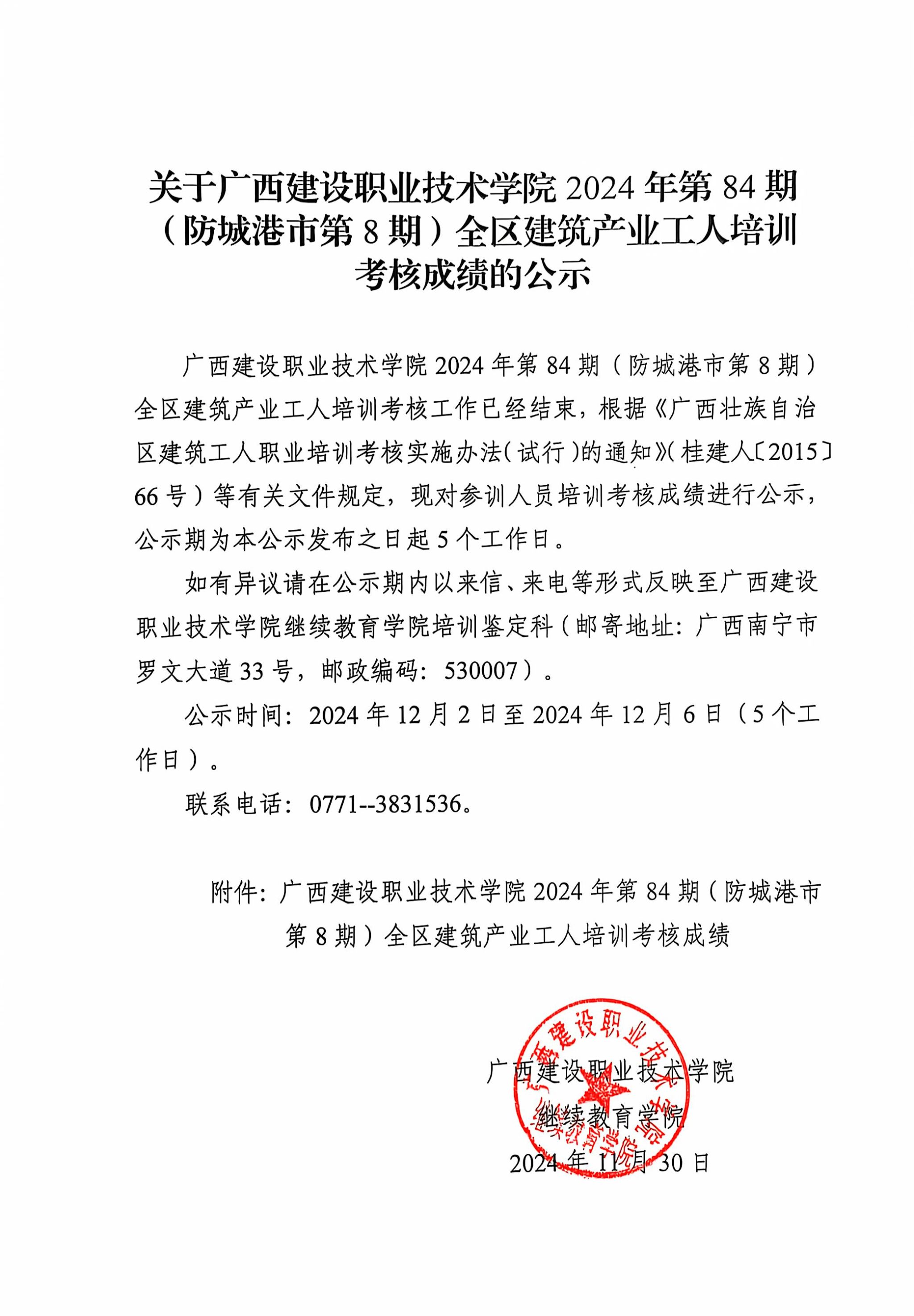 培训信息 当前位置: 首页 >> 培训信息 >> 正文 关于开云线上平台_开云(中国)2024年全区开云线上平台_开云(中国)产业工人第84期(防城港市第8期)培训考核成绩的公示 发布日期:2024-11-30 点击: 附件【关于开云线上平台_开云(中国)2024年全区开云线上平台_开云(中国)产业工人第84期(防城港市第8期)培训考核成绩的公示.pdf】已下载次